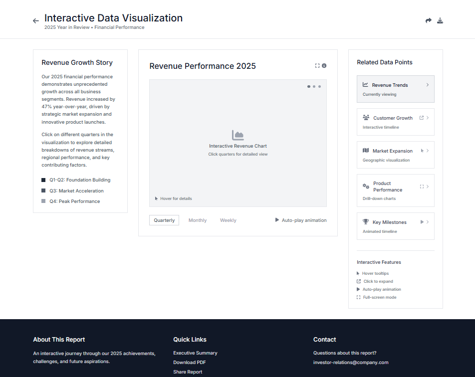Outcome: Increased engagement time by 25% compared to the prior year’s static report